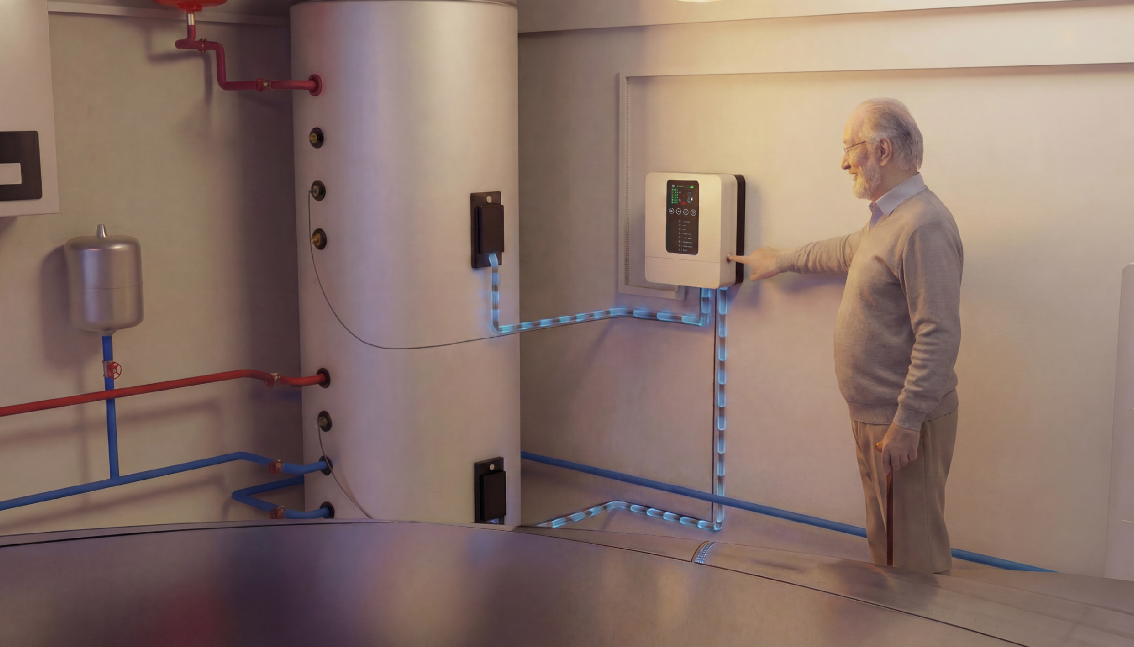 智能电源切换能源收集器可自主切换电站盈余电力与电网电力,持续加热家庭热系统。